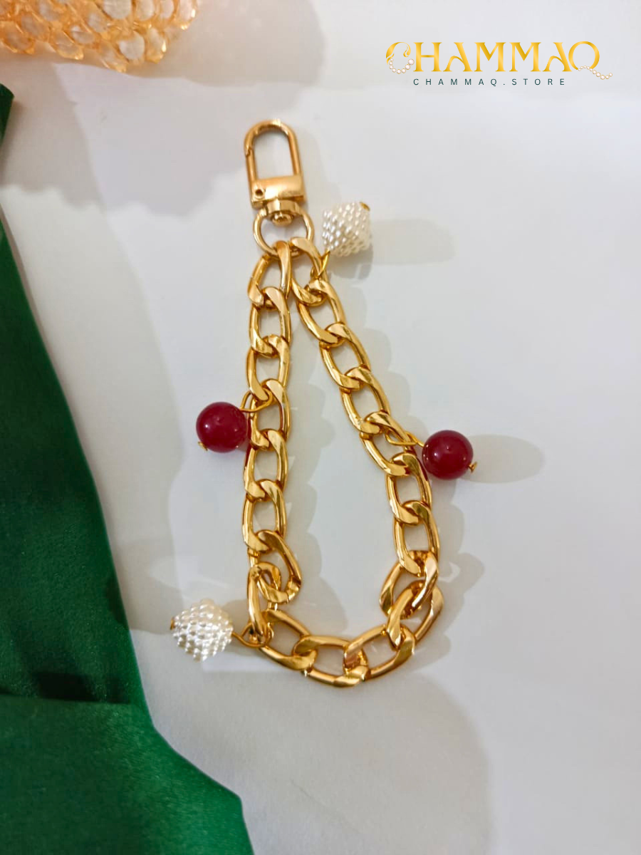 Gold Chain Keychain with Red and Pearl Touches | CHAMMAQ
